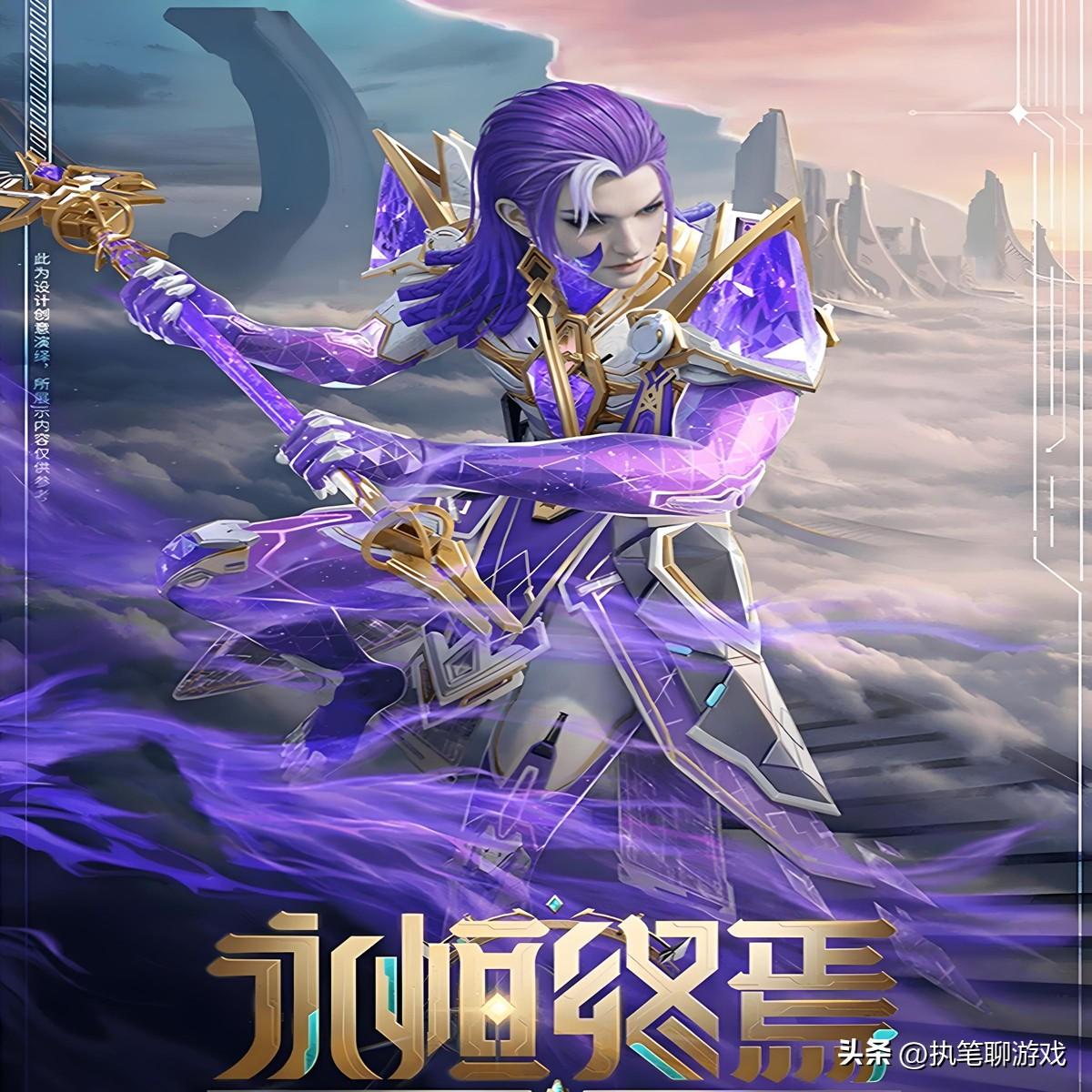 接下來出場的角色被命名爲“永恆終焉”,以紫羅蘭元素爲主題,白金流線型外骨骼,最大的亮點就是紫色特效構成的手臂,流光特效隱約可見。