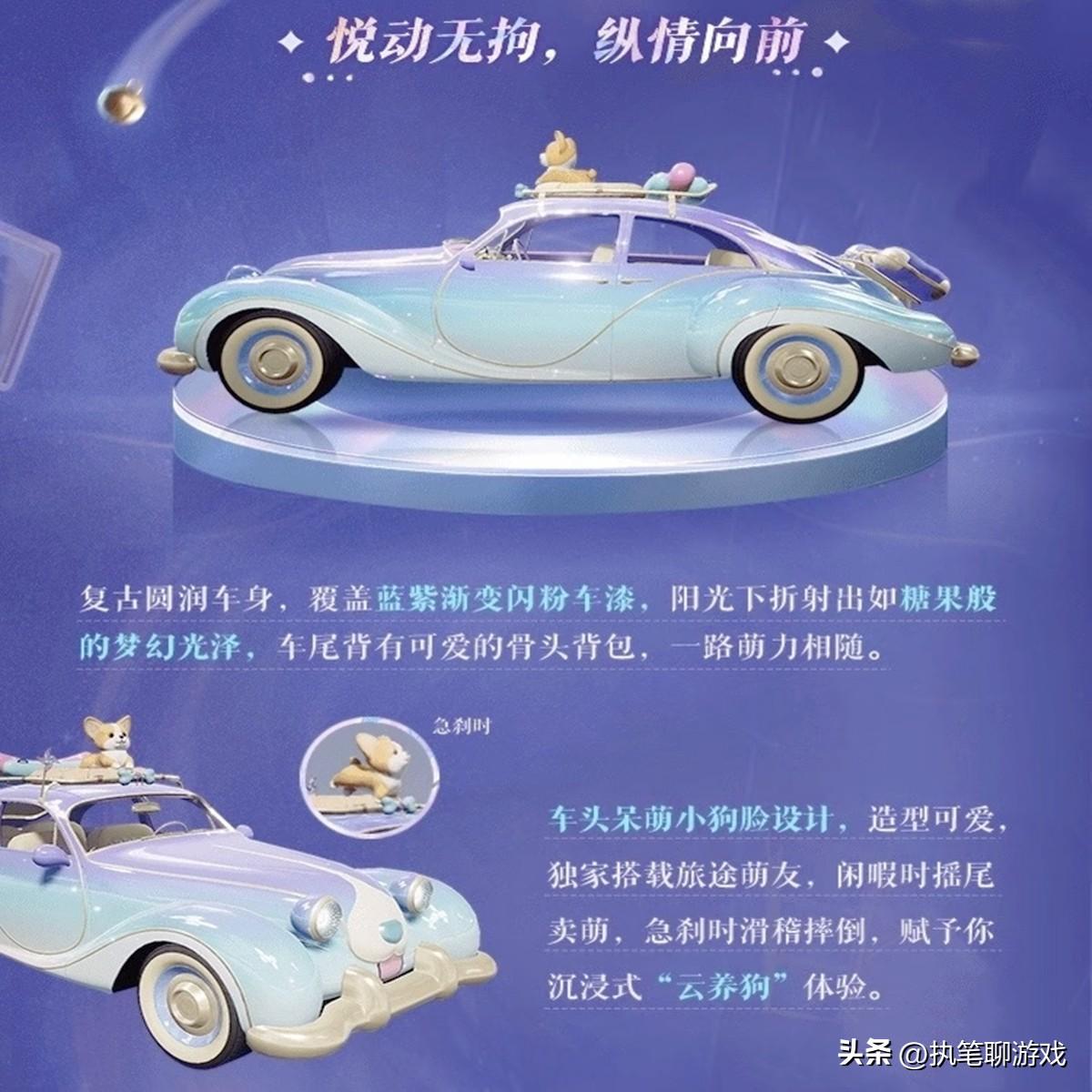 首先說明一下,“萌寵漫遊”的載具類型是轎車、蹦蹦,每一種都有兩個顏色,1個幣的有旅行汪汪(海風藍)、魔法喵窩(復古粉);3個幣的有旅行汪汪(夢幻藍)、魔法喵窩(心動粉)。