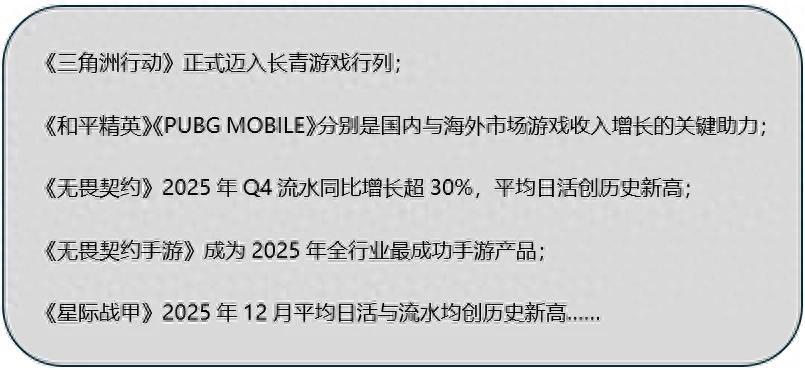 如瑞銀預測射擊會成爲2026年騰訊遊戲業務保持兩位數增長(市場共識爲9%)的重要支點,我們雖無法給出數據,卻足以基於現有信息判斷射擊增長是可知可信可期待的。