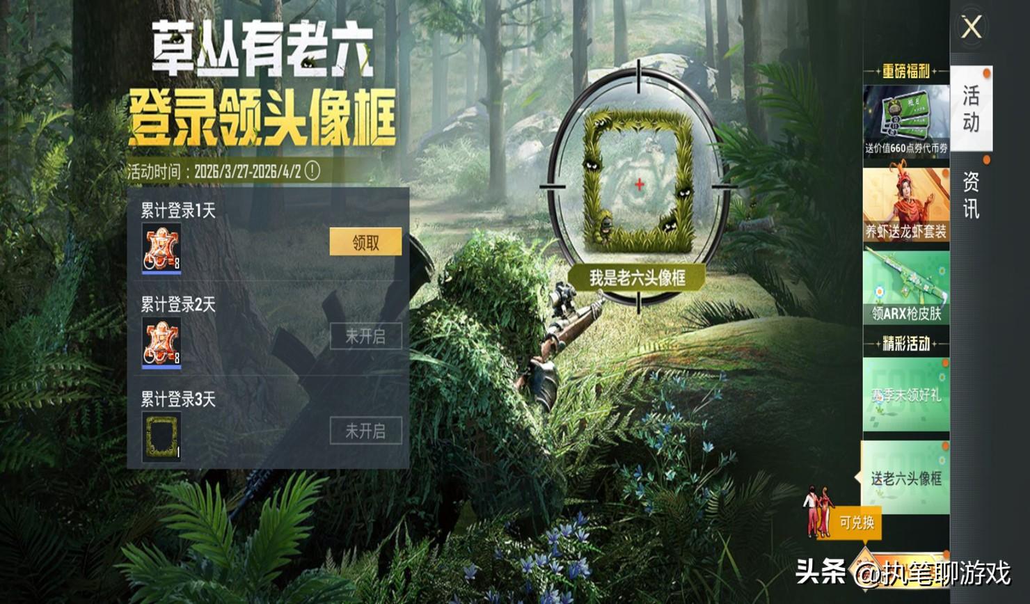 除此之外,光子還特意拿出了老6專屬的頭像框作爲獎勵,連續3天進入遊戲即可獲得,前兩天還可以獲得福利碎片~
