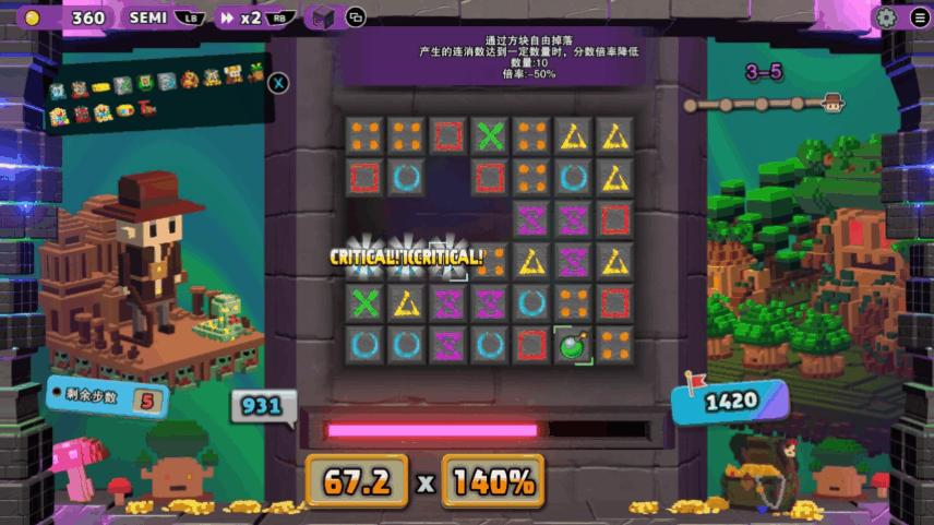 首先,本作的三消玩法並不像其他休閒三消遊戲一樣的“單向移動”。選中方塊後,玩家可以在橫縱兩個方向上自由移動。而多了一個維度,則極大擴充了玩家的選擇面,當然,這也意味着玩家每次移動所造成的影響也會變大,這在很大程度上在操作上增強了遊戲的策略性。