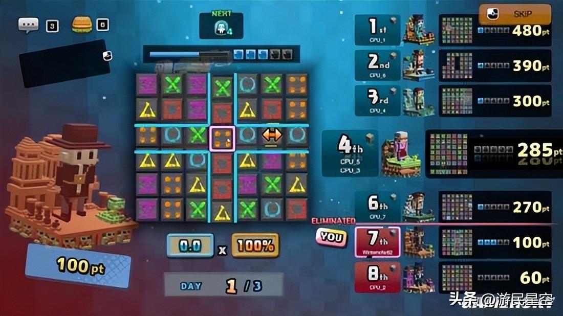 只是,在單人模式拿“半自動模式”爽拿分的玩家,並不能把自己的天賦帶到多人模式中。遊戲最高支持八人同時聯機,其玩法與單人模式並沒有明顯差異。但相比於單人模式,本作的聯機卻更考驗玩家的技術水平,不光是半自動模式徹底拜拜,更多的Debuff方塊、需要和對手們拼手速的BUFF道具“遺物”等,都無不考驗着玩家的反應力與策略思路。