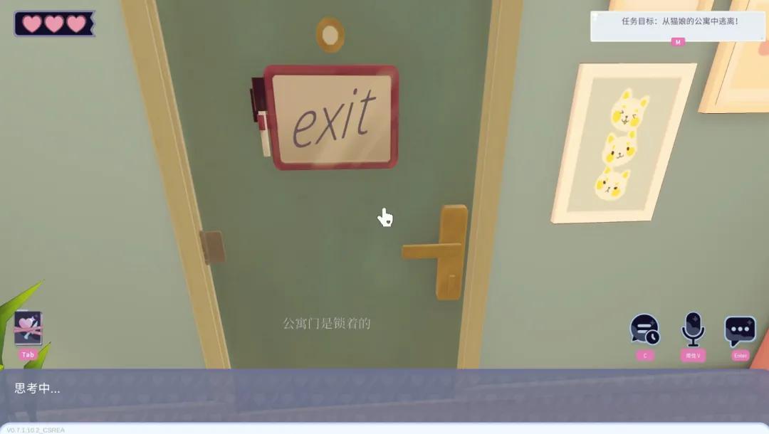 貓娘見你想出去,對你說,外面太危險了,話裏話外都在阻止你。這個時候你終於明白,你是被她軟禁了。