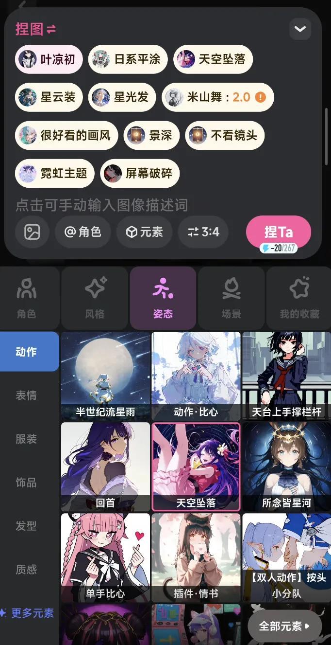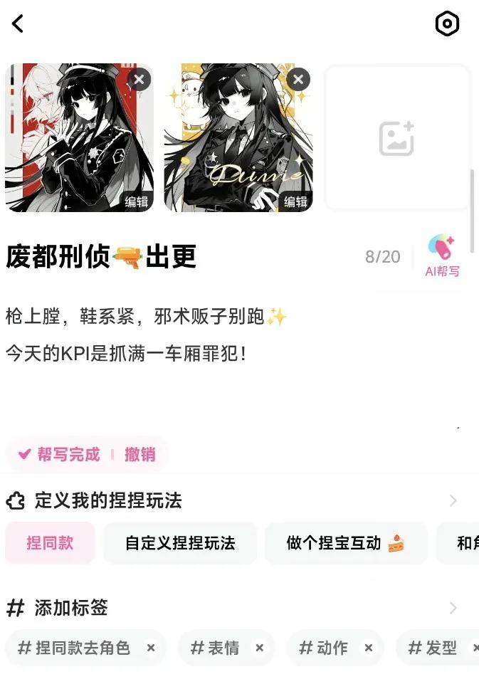這個過程中,社區自然沉澱出一套共識:哪些概念、角色、設定被大家認可,哪些標籤組合能產出好內容。目前捏Ta的創作者已經發明瞭500多類玩法,從給角色做裝備,到角色相遇、組CP、下副本,應有盡有。
