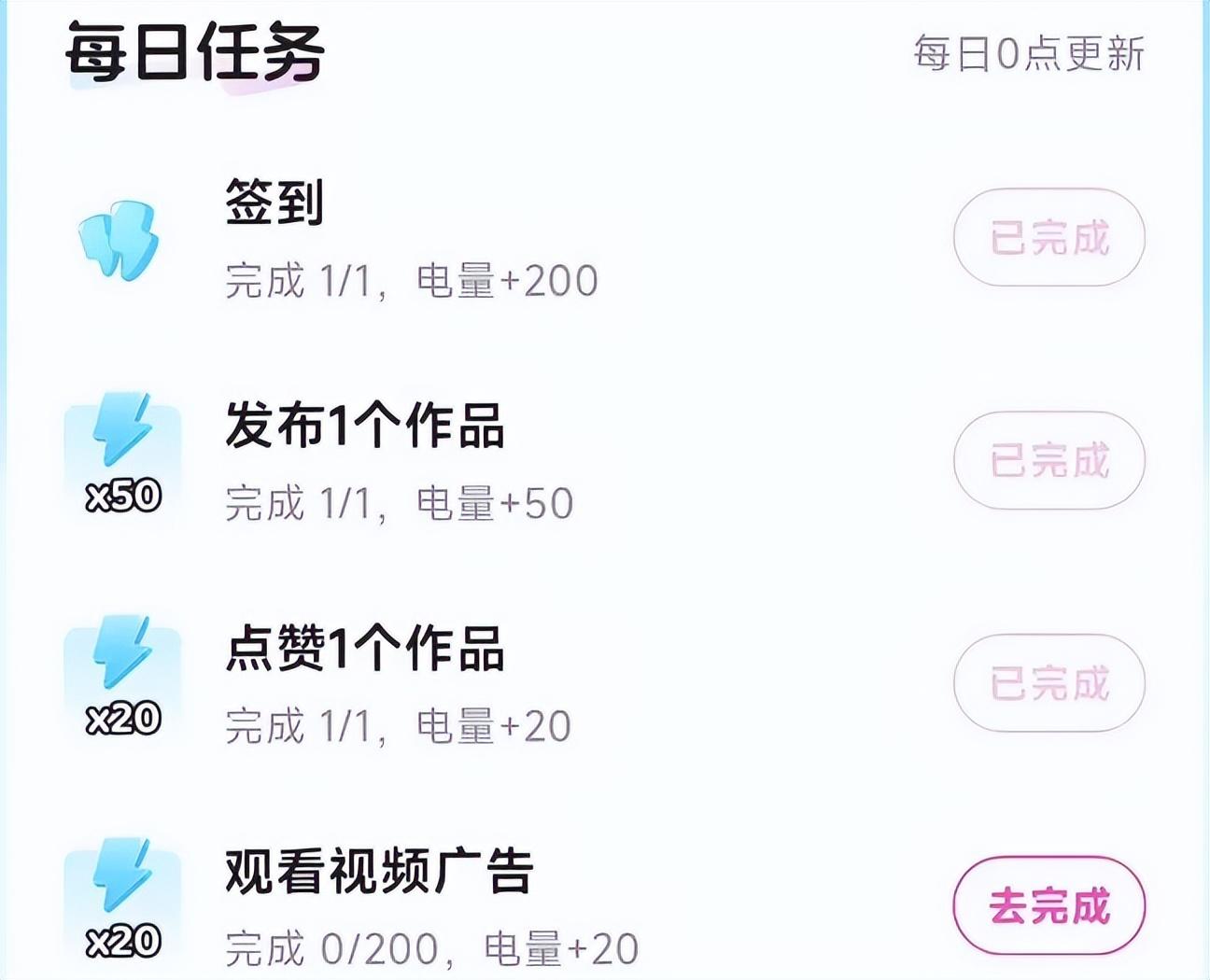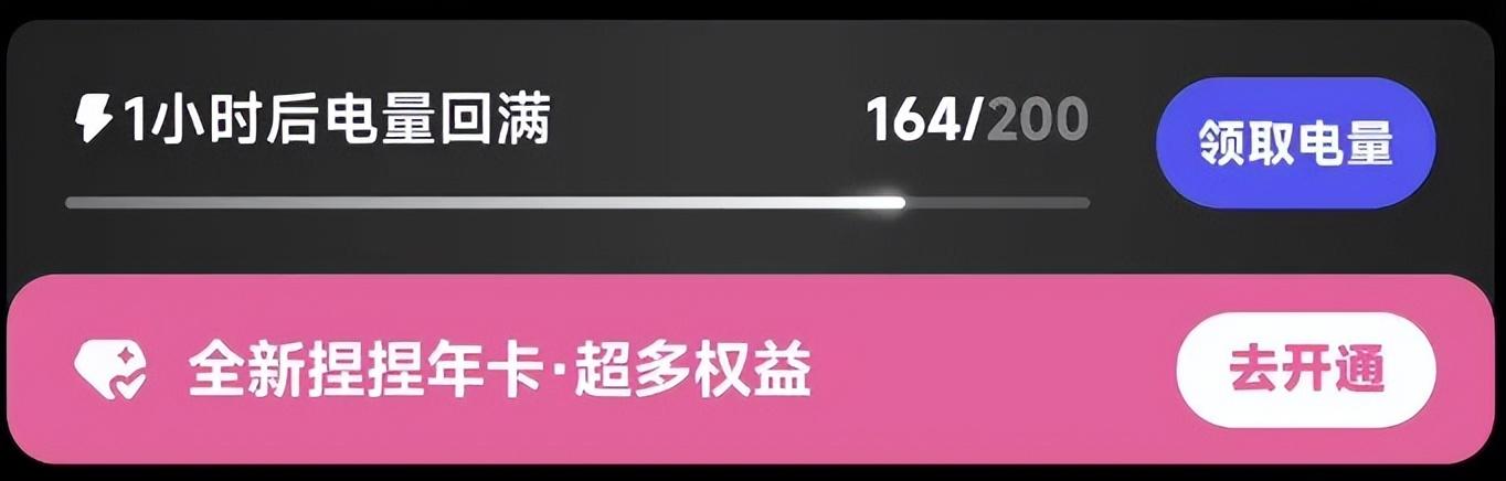 捏Ta的變現邏輯比較遊戲化:廣告(IAA)+內購(IAP)。用戶每次生成內容需要消耗電量(類似遊戲的體力值),電量隨時間恢復,也可以通過做任務、看廣告或充值獲取。