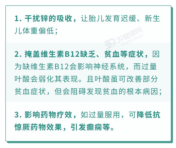 此外,據《中國居民膳食營養素參考攝入量》,成年人每日葉酸攝入超過1mg,可能還會造成一些不良後果: