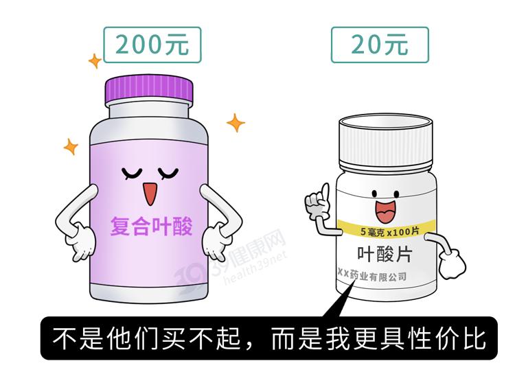 另外,在選擇葉酸產品時,不一定貴的就更好,切忌盲目跟風。一般選擇正規藥房中十幾二十的葉酸片就好,市面上過百元的多是複合葉酸保健品,裏面除了葉酸,還有多種維生素,不注意用法用量很可能適得其反。