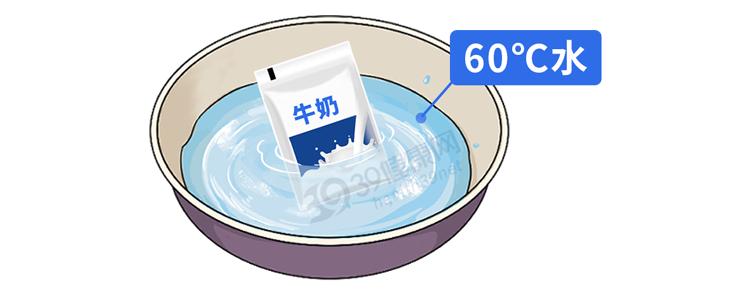 帶包裝的紙盒裝牛奶可以放在60℃的水中,加熱10分鐘左右即可,但注意不要直接丟進沸水中加熱,因爲部分牛奶包裝中含有聚乙烯,高溫下易釋放出有毒物質。
