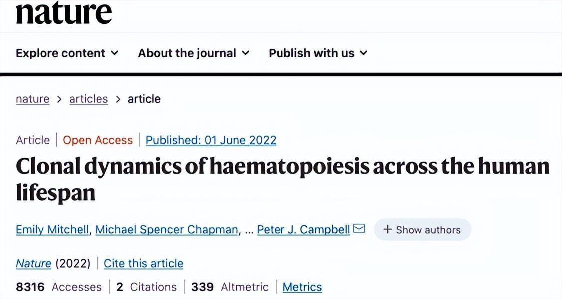 權威期刊《自然(Nature)》上發表過一項劍橋大學進行的研究,研究人員對10名新生兒進行了81年的隨訪,分析不同年齡段骨髓血細胞變化。
