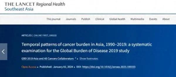 近日,《柳葉刀–區域健康(東南亞)》發佈一項新研究稱,亞洲癌症負擔正快速上升。1990~2019年,在22種“全球疾病負擔研究”二級病因中,癌症在亞洲的排名從第七位上升至第二位,僅次於心血管疾病。