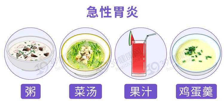 急性胃炎發作時,需遵醫囑禁食或供給流食,以粥、菜湯、果汁、雞蛋羹爲宜。千萬不要稍有好轉,就大喫大喝,導致復發。