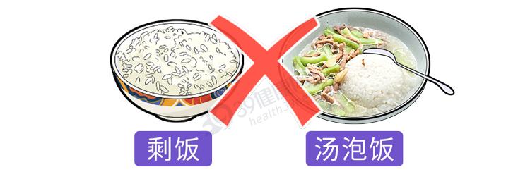 湯泡飯看起來鬆軟、好消化,實則不然。湯泡飯中米粒仍保持完整結構,不細嚼便和水吞下,反而增加了胃腸負擔。而且湯泡飯一般喫得很快,唾液、胃腸道消化液分泌時間也隨之變短,又有水分加以稀釋,更不利於食物消化與吸收。