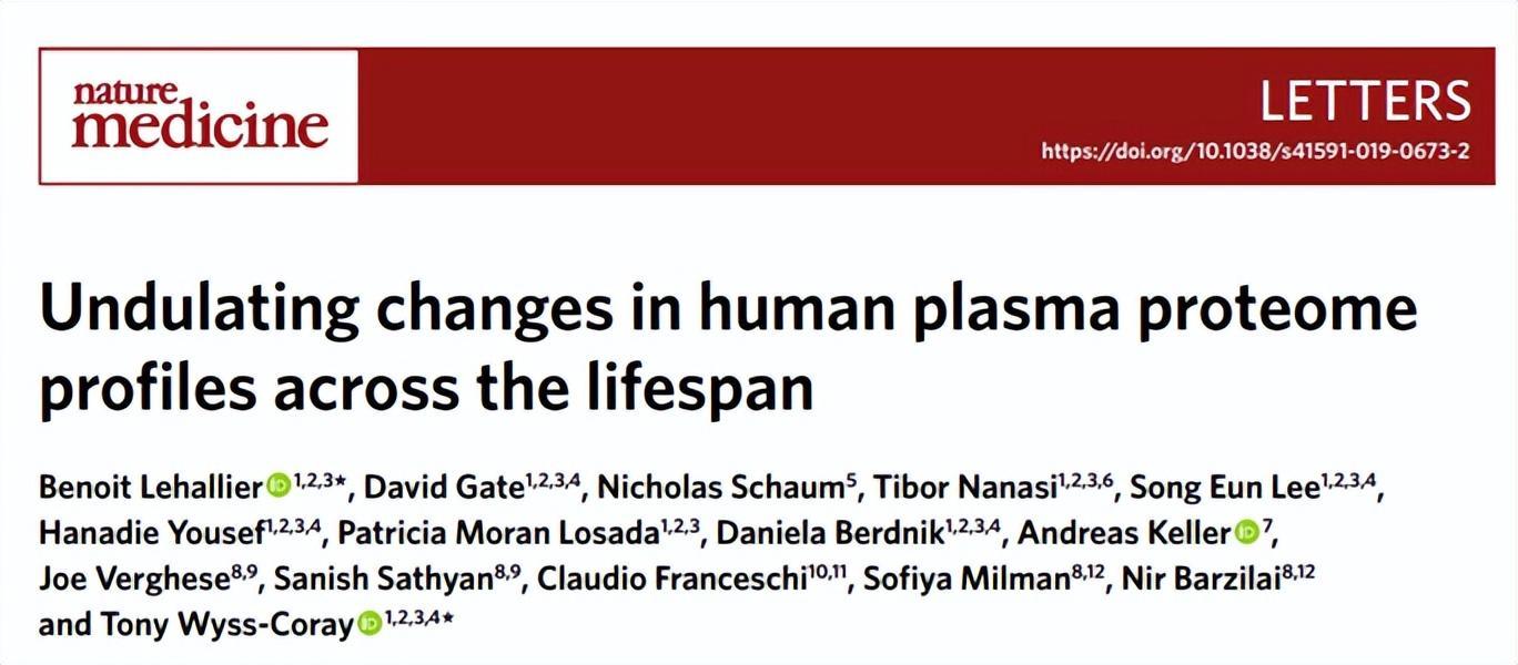 《自然·醫學》在2019年發表的一項研究指出,人的衰老存在突然量變到質變的生理轉折點。研究人員對4263名年齡18~95歲受試者的血漿樣本進行了分析,觀察血液內蛋白質的變化。結果發現,血液中有1379種蛋白質會隨着年齡的變化而變化,而在34、60、78歲時會出現變化高峯期。