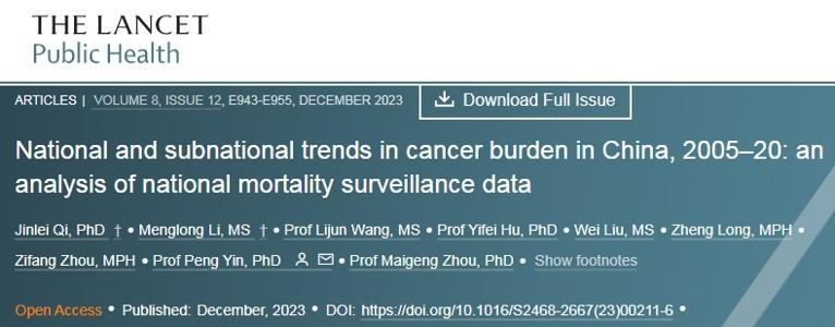 2023年12月,中國疾控中心殷鵬研究團隊在《柳葉刀·公共衛生》上發表了一項2005~2020年間針對我國3萬餘名癌症患者的調查數據。結果顯示,15年時間裏我國癌症死亡的總人數增加了21.6%,2020年因癌症死亡的男性比例>65%。