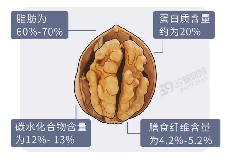 核桃是世界“四大”乾果之一,核桃仁中含量最高的是脂肪,其次爲蛋白質、碳水化合物和膳食纖維。