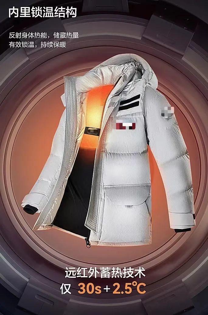聲稱“保溫儲熱”“在衣服裏建起一堵‘鎖溫牆’”的紅外蓄熱羽絨服一般是使用遠紅外發熱材料,當它吸收到人體產生的熱能後,可將其轉變成一定波長的遠紅外線,再輻射於人體,從而達到防寒保暖效果。