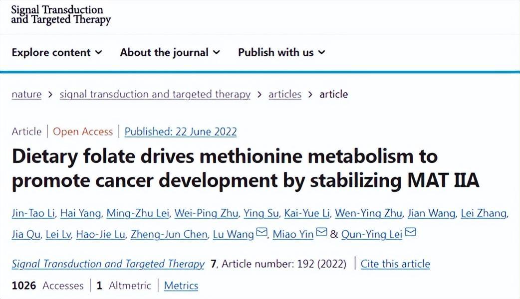 關於葉酸致癌的說法,源於2022年復旦大學研究團隊在《自然》子刊上發佈的一項研究。