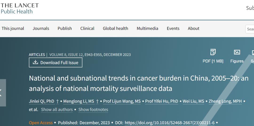 近日,中國疾病預防控制中心等研究團隊在《柳葉刀-公共衛生》發表一項新研究,通過分析2005~2020年全國及各省癌症死亡及癌症負擔數據,發現: