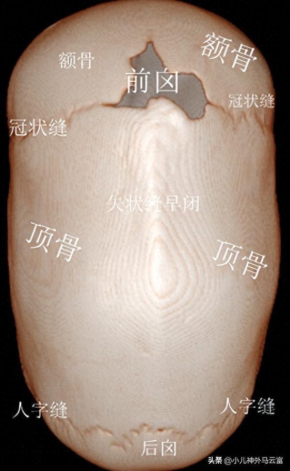 單個或多個顱縫過早閉合,形成特殊的頭顱外觀,稱爲顱縫早閉。