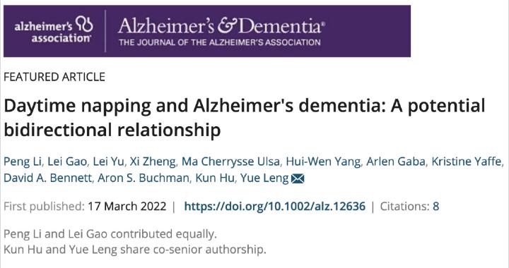 加利福尼亞大學的研究人員曾對1065名老年人進行了14年的隨訪調查,結果發現午睡時間與阿爾茲海默症的發生之間存在雙向關係。