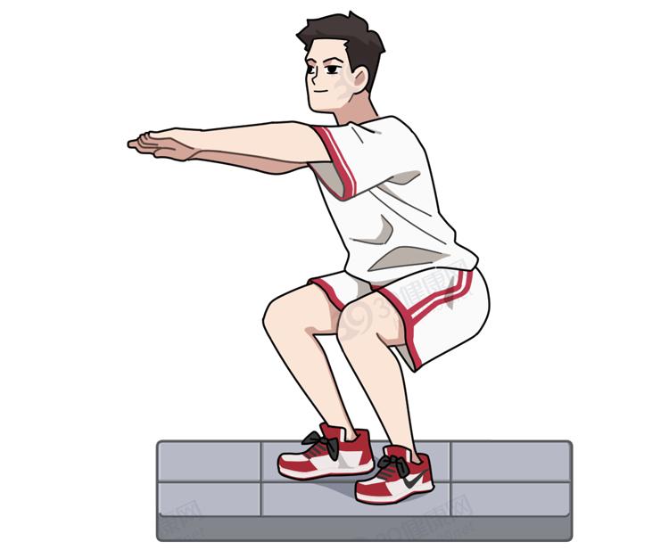 具體做法:雙手向後互抱手肘,雙腿下蹲到底再快速站起。
