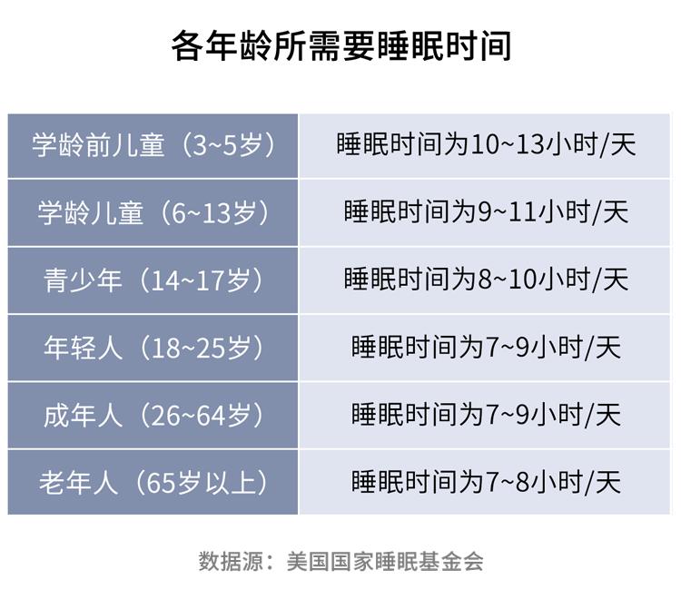 對於正常成年人來說,如果睡眠時長≤6小時,就屬於睡眠不足了,只有每天達到7-9小時的睡眠時長,纔算睡得飽。
