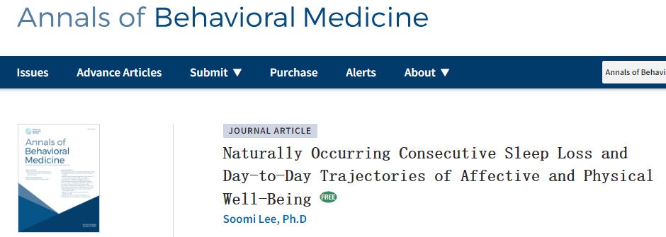 [2]Lee S. Naturally Occurring Consecutive Sleep Loss and Day-to-Day Trajectories of Affective and Physical Well-Being. Ann Behav Med. 2022 Apr 2;56(4):393-404. doi: 10.1093/abm/kaab055. PMID: 34223608; PMCID: PMC8976290.