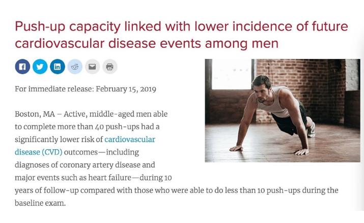 一、哈佛研究:俯臥撐有助預測心血管病風險