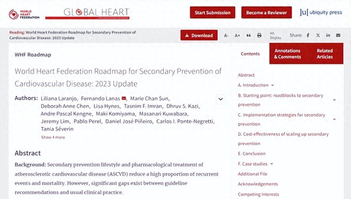 近期,世界心臟聯合會更新了心血管疾病二級預防“路線圖”,提出遵醫囑用藥,並配合6種方法有助降低心血管疾病復發風險和死亡率。
