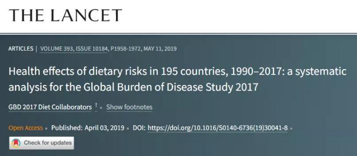 《柳葉刀》雜誌曾發表過一項包括全球195個國家地區的調查,分析了飲食結構導致的死亡率、疾病負擔。