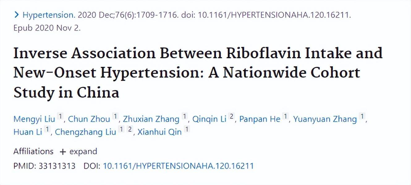 再根據受試者在隨訪期間有無出現新發高血壓,結合年齡、性別等危險因素,計算出維生素B2與新發高血壓的關係,得出維生素B2對高血壓有保護作用。除此之外,國外也有研究表明適當補充維生素B2有助於更好地控制血壓。