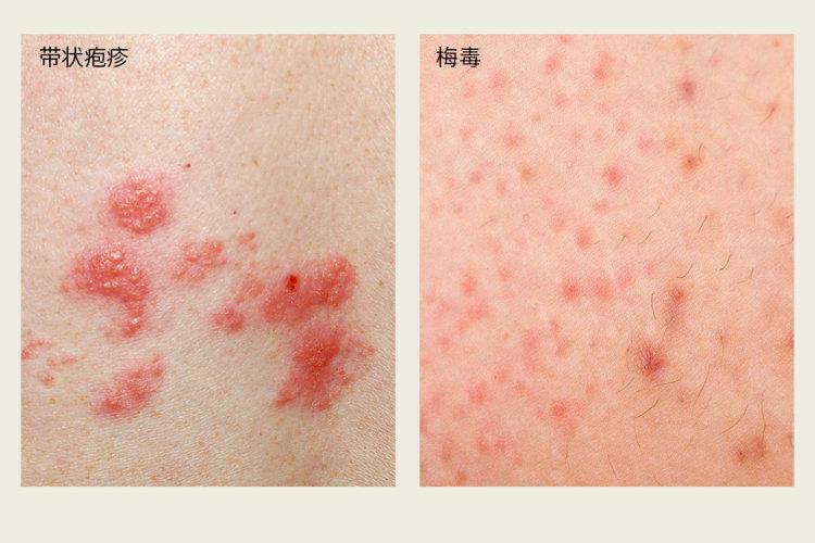 ②梅毒可能導致外生殖器和周圍區域出現0.5-1釐米大小的暗紅色斑疹或潰瘍,初期不痛不癢,進展到二期時可出現全身對稱的“梅毒疹”,皮膚呈暗紅色。