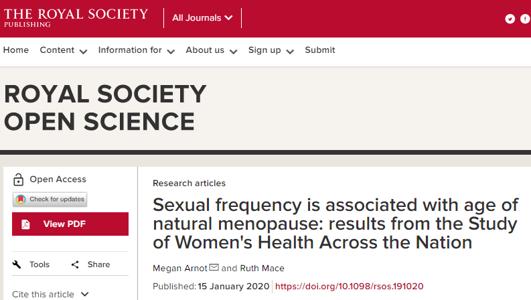 研究結果發現,每週有性行爲的女性相較於每月有性行爲的女性,其停經風險降低了28%。此外,每月至少有一次性行爲的女性相比每月少於一次的女性,其提前進入更年期的可能性降低了19%。