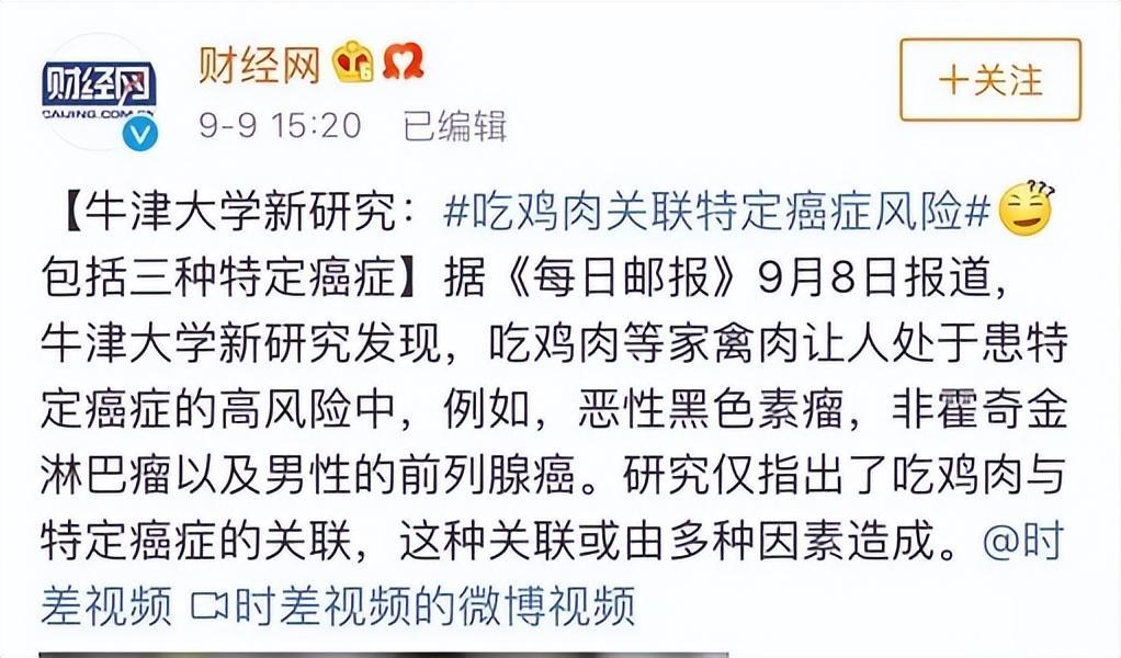 這一說法其實源自一篇“牛津大學研究:喫雞肉關聯患癌風險,包括三種特定癌症”的文章,我們具體來看看。