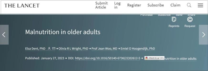 權威醫學雜誌《柳葉刀》曾發佈過相關文章,提醒65歲以上的老年人正面臨着嚴峻的營養不良風險。