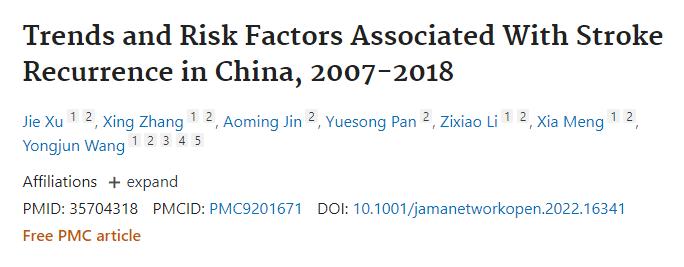 首都醫科大學附屬北京天壇醫院、國家神經系統疾病臨牀醫學研究中心,分析了2007~2018年我國21300例缺血性腦卒中(又稱“腦梗”)患者的復發趨勢及危險因素。