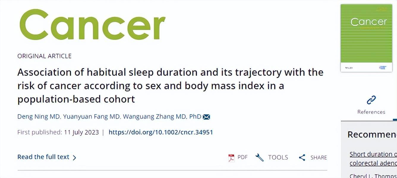 一項由華中科技大學同濟醫學院附屬同濟醫院的研究團隊於2023年7月在《癌症》期刊上發佈的研究,深入探討了國人的睡眠習慣、睡眠時間與癌症風險之間的關係。