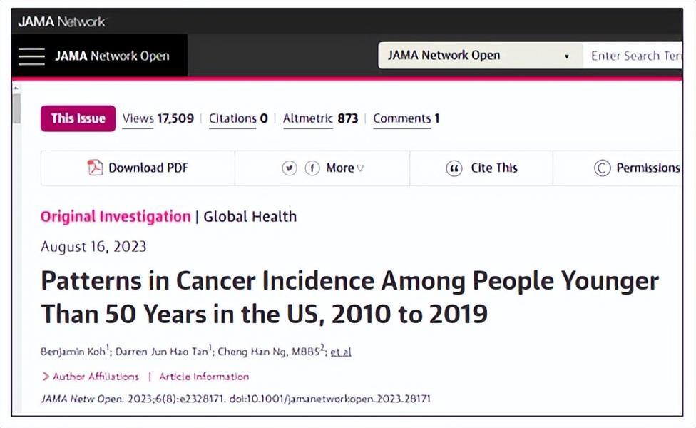 近年來,癌症的發病率不斷上升。2023年8月,《美國醫學會雜誌》(網絡公開版)發表的一項新研究指出,50歲以下人羣的癌症發病率在過去10年呈現上升趨勢,平均每年增加0.28%。特別是在30~39歲的人羣中,癌症發病率的增速最爲顯著。