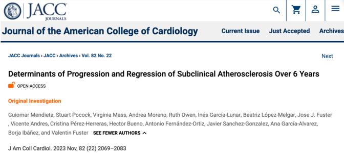 對此,西班牙巴塞羅那醫院的研究團隊在《美國心臟病學會雜誌》也發表了一篇相關研究,揭示了早期干預對於中青年人斑塊的重要性。