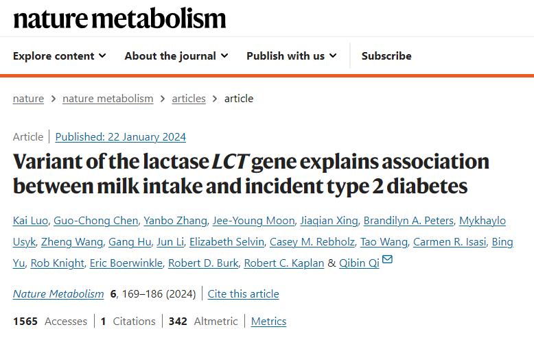 - 對於乳糖耐受的人羣,喝牛奶與患糖尿病之間的關聯並不明顯。可能是因爲他們的腸道菌羣和代謝物水平本來就比較穩定,不易受飲食變化的影響。
