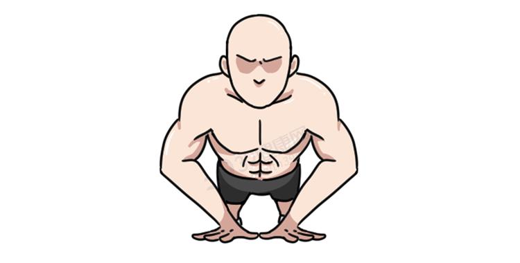 一是準備的姿勢。保持頭、肩膀、軀幹和下肢在一條直線上,初學者可以將雙腿分開與肩同寬,體力較好的則可以保持併攏,手掌要完全觸地放在肩膀下方,虎口張開四指向頭前方45°即可。