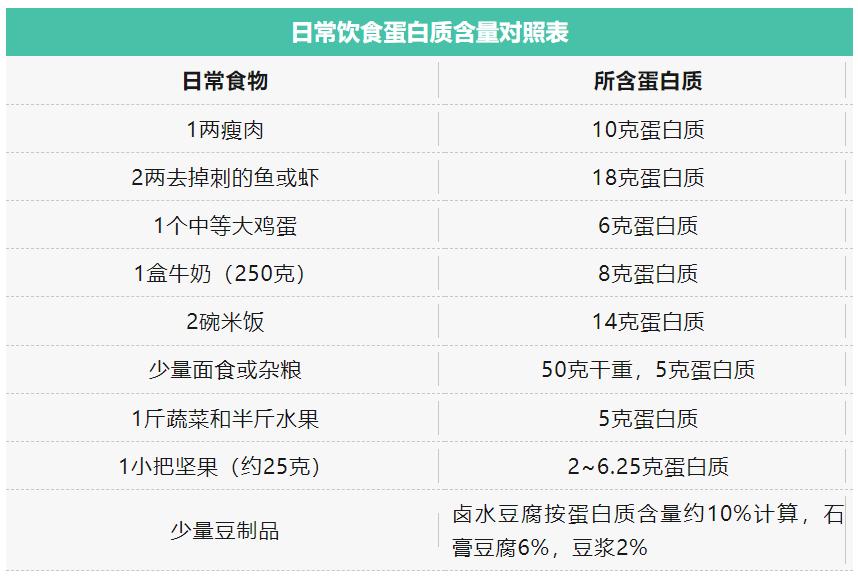 一般來說,每日喫適量主食(男性6兩以上,女性5兩以上),1~2袋鮮牛奶或等量的酸奶,1個雞蛋,40~75克畜禽肉類、40~75克水產品、25~35克大豆和堅果類,就足以補充健康人每日所需蛋白質。