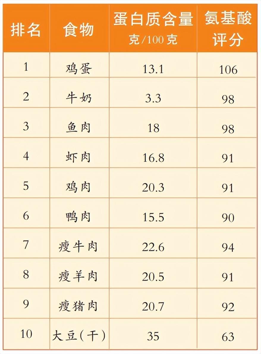 中國營養學會曾對常見食物進行了營養評價,選出了排在前十名的“優質蛋白質十佳食物”(詳見表格)。