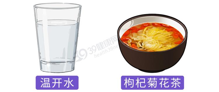 起牀後喝一杯溫開水,有利於加快身體的新陳代謝,白天也可以多喝喝菊花枸杞茶,幫助清肝明目。