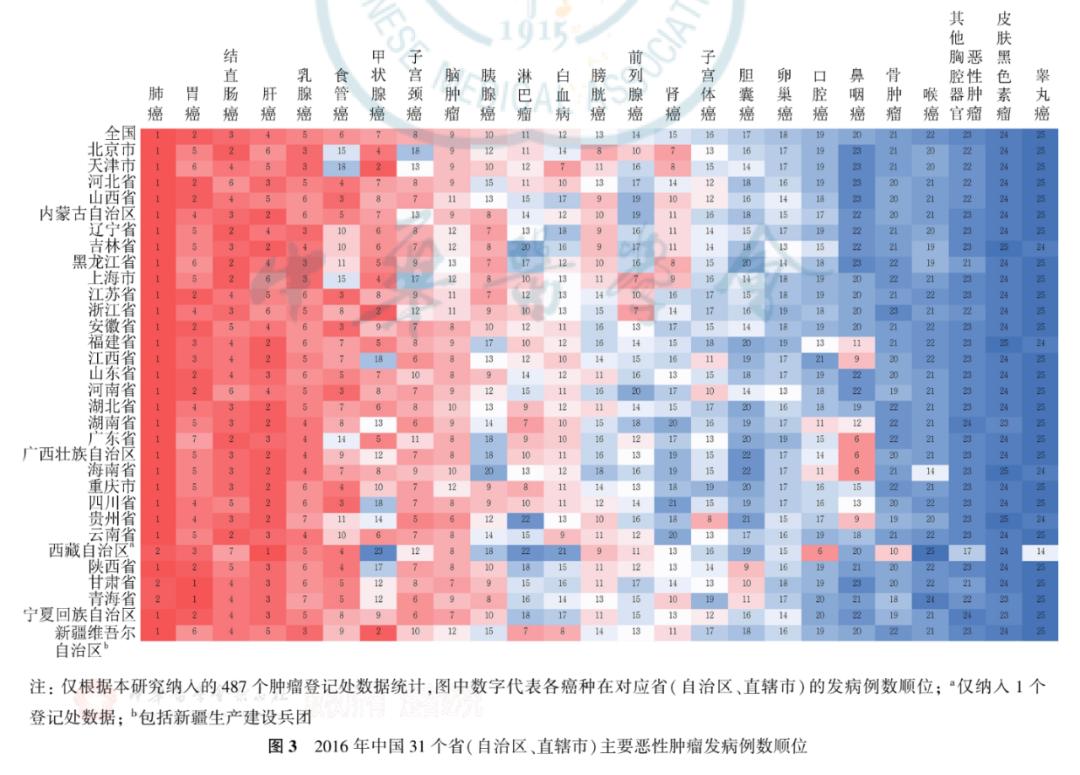 根據《2016年中國惡性腫瘤流行情況分析》首次公開的各省級癌症流行情況來看,我國癌症發病類型具有地域差異性,爲大家敲醒警鐘!其中,值得大家注意的是:
