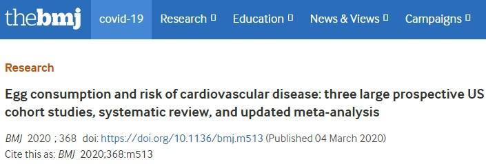 [3] Jean-Philippe Drouin-Chartier, et al.,(2020). Egg consumption and risk of cardiovascular disease: three large prospective US cohort studies, systematic review, and updated meta-analysis. BMJ, DOI:10.1136/bmj.m513.