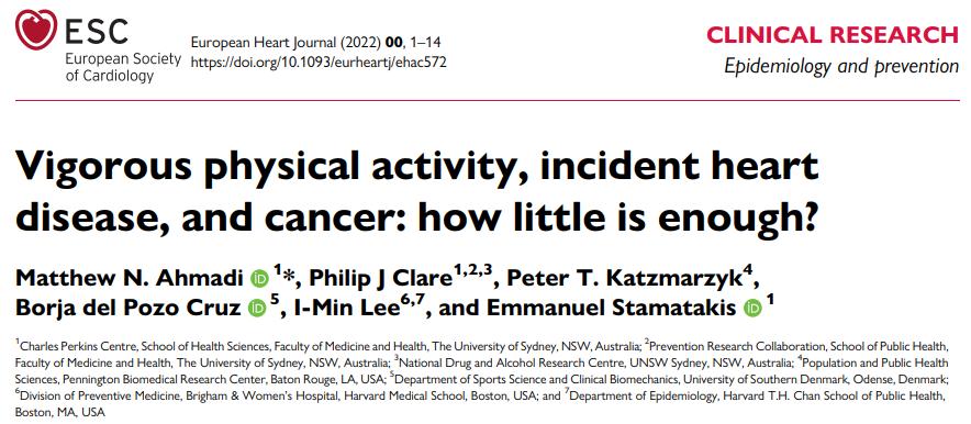 研究人員通過對71893名成年人進行了長達7年的隨訪調查,結果發現共有1927名受試者死亡,計量關係發現每週進行15—20分鐘劇烈運動,能夠降低癌症發病率、心血管疾病發病率及死亡率。