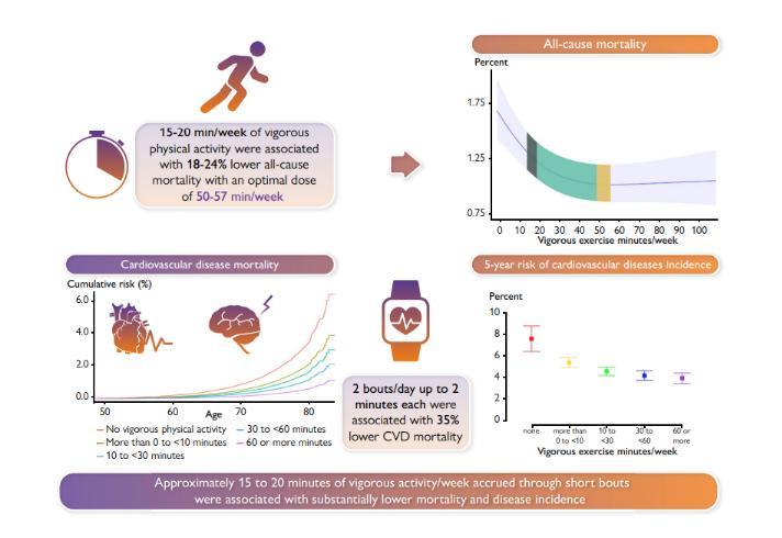 每週15-20分鐘劇烈運動與較低的死亡率有關