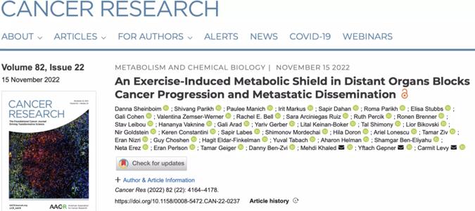 2022年《Cancer Research》期刊上發表的研究探明瞭“鍛鍊防癌”背後的潛在機制,並綜合動物實驗和臨牀觀察得到結論——高強度運動能顯著降低轉移性癌症的風險!