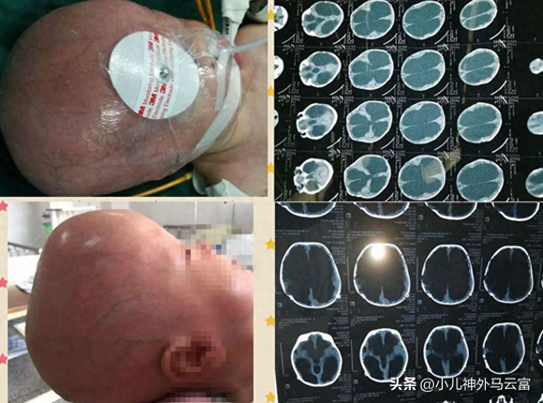 重度腦積水2例頭圍大及腦部CT患兒圖